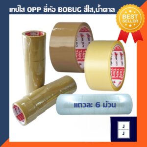 เทปใส เทปสีน้ำตาล OPP ยี่ห้อ BOBUG (ยกลัง 108 ม้วน ราคารวมแวท) เทปกาว เทปติดกล่องพัสดุ เทปปิดกล่อง เทปกาวแปะกล่อง